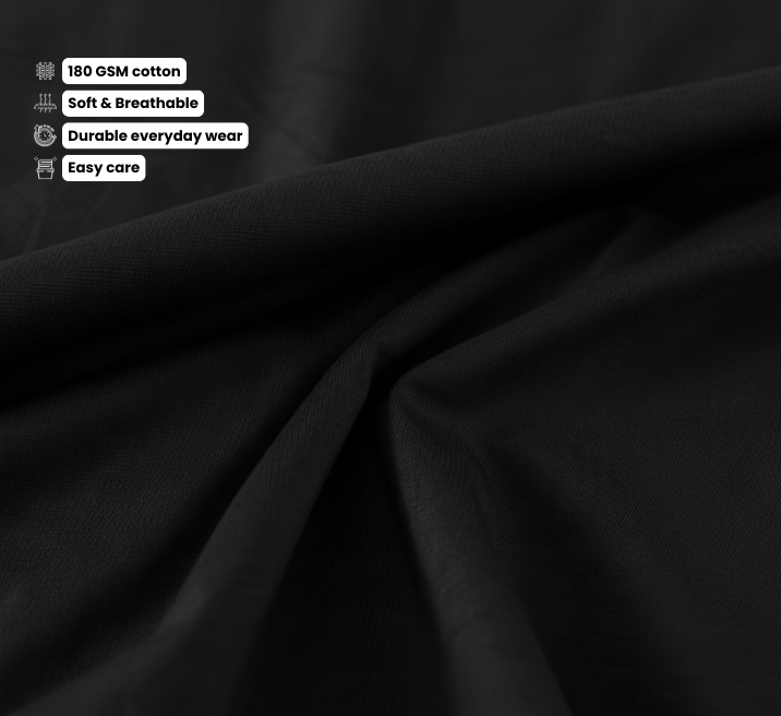 • 180 GSM premium cotton — soft, breathable, and ideal for daily wear