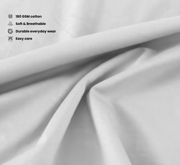 • 180 GSM premium cotton — soft, breathable, and ideal for daily wear